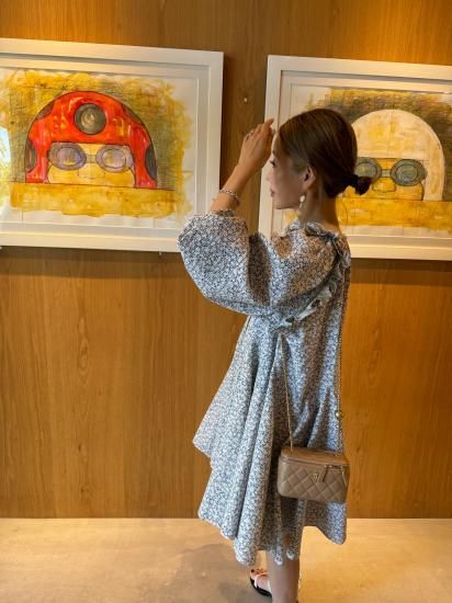 flower flare dress(blue)